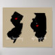Personalizar tu propio poster! Cada estado está ubicado en el diseño, sólo tienes que encender los estados que quieres y dejar los que no quieres fuera. Mueva los corazones a su ubicación y actualice el nombre de la ciudad. Elija un color de fondo y rote la línea discontinua y ya está listo. Si tienes algún problema, avísenme y estaría más que feliz de que sea personalizado para ti y que se vea perfecto! KymberliDesigns@gmail.com