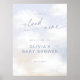 Unas nubes acuáticas de ensueño, "Estamos en Nueve Nubes", señal de poster de bienvenida para bebés con ducha.