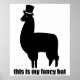 Esta Es Mi Gorra De Fancy Llama poster. Un minimalista diseño vectorial con una llama lujosa que lleva un gorra aún más elegante. Una buena elección para todo aquel que ame las llamas, los sombreros y los animales de lujo.