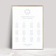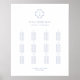 Este cuadro vertical de 12 mesas da un toque acogedor, elegante y de celebración a los huéspedes. Elegante y moda con monograma de pareja floral con texto en azul polvoriento contra fondo blanco. Personalice esta tabla de asientos para convertirla en la suya. CONSEJO: Cuando no necesite ningún texto, simplemente deje el cuadro de texto vacío.
