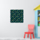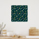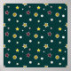 Elegante patrón de Navidades impecables, estrellas coloridas y copos de nieve sobre fondo verde oscuro.