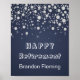 Poster de celebración de Fiesta de jubilaciones - Este diseño presenta un confeti de efecto plateado y estrellas en un fondo azul oscuro
