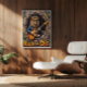 Esta atractiva obra de arte retrata a un león, que luce sin esfuerzo fresco con gafas de sol y una chaqueta de cuero, entregando "strumas primarias" en una guitarra eléctrica desde dentro de un hueco de árbol texturado. Los elementos de los bosques naturales encuadran sutilmente la escena, mientras que el prominente mensaje "Rock or Die" refuerza la energía cruda. El grueso y expresivo deterioro crea una textura tangible, haciendo que la pasión del león por la música realmente resuene.