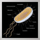 Diagrama de una bacilo (forma de la varilla) con cápsula, pared celular, membrana plasmática, citoplasma, ADN cromosómico (nucleoide), plásmido, ribosomas, flagela, fimbrias y pili (pilus). Sobre fondo negro. Científicamente preciso. Excelente para laboratorio de ciencias escolares, oficinas de médicas, clínicas, hospitales... con fines educativos. Archivo vectorial escalable a cualquier tamaño sin perder resolución. Visita mi tienda para ver más ilustraciones médicos, tanto cosas serias como divertidas. Todas las imágenes son hechas por mí mismo, un científico. Si no puedes encontrar lo que necesitas aquí, simplemente envíame un comentario.