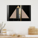 Eleva tu espacio con este arte geométrico sofisticado. Formas simétricas en negro profundo, dorado metálico y beige crean una composición inspirada en Art Déco. Líneas precisas y contraste lujoso traen equilibrio y modernidad. Ideal para branding premium, oficinas ejecutivas y decoración de interiores de alta gama.