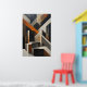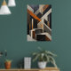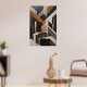Arte abstracto geométrico con formas que se asemejan a escaleras y bloques arquitectónicos. Tonos de negro, blanco y naranja oxidado. Textura pintada sofisticada. Ideal para decoración moderna y oficinas. Diseño estructural que juega con la perspectiva y la profundidad en una composición elegante y contemporánea.