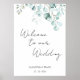 Un marco suave de hojas de eucalipto acuareladas enmarca esta señal de bienvenida personalizada con letra de escritura limpia. La apariencia de vegetación ligera funciona bien para bodas de jardín, ceremonias al aire libre, recepciones modernas y lugares simples y elegantes. Agrega nombres y fecha para crear un letrero de entrada personalizado para tu celebración o muestra de bienvenida al evento.