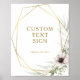Este póster personalizado de tarjetas y regalos de eucalipto dorado geométrico es perfecto para su elegante boda boho. Está diseñado con simples flores de anemona blancas y púrpuras bohemianas, hojas de salvia de color verde acuarela simplistas y marcos de invierno con lámina de oro modernos. Con la combinación de flores blancas y vegetación rústica simple, seguro que creas la atmósfera de tus sueños.