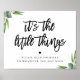 Arreglos de hojas de eucalipto pintadas, poster de invitados boda personalizado. Características, "son las pequeñas cosas" guión gráfico y acento cardíaco.