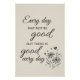 A calming and hopeful message for life’s ups and downs. This minimalist beige-and-charcoal poster features the uplifting quote “Every day may not be good, but there is good every day,” presented in elegant script typography with delicate floral line art. Perfect for encouraging mindfulness and gratitude, this inspirational wall art brings warmth and positivity to any space. Ideal for bedrooms, living rooms, offices, classrooms, therapy rooms, or meditation spaces. It also makes a thoughtful gift for friends, loved ones, or anyone who appreciates daily encouragement. • Clean black background with white lettering • Elegant script and modern typography mix • Soft floral illustration for a peaceful feel • Meaningful gift for any occasion A gentle reminder to find the good—every single day.