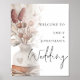 Grasas rusticas de pampas superpuestas bienvenidas al Boda. A la izquierda hierbas de estilo bohemio en colores otoñales terracota, crema y marrón, con Boda en un elegante guión set. Personaliza fácilmente el resto del texto que está parcialmente sobre los granos que están detrás de un superpuesto tintado graduado.