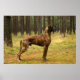 Un fabuloso Gran Danés de pie en el bosque. El colorante del perro parece ser un camuflaje en esta foto.