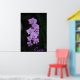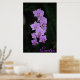 Este hermoso tallo de lilas y orquídeas púrpura parece flotar en el espacio de fondo negro. Bordeado de color coordinado y la palabra exótica. Fantastico poster, bello punto focal en cualquier habitación.