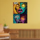 Each panel is a visual outburst—starry eyes, glowing lips, and surreal expressions—crafted in neon palettes and bold halftone shading. The split-face design symbolizes the tension between identity, technology, and emotion—making this more than just wall art... it's a visual conversation starter.