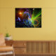 The second of a two piece set inspired by Dr Stephen Hawking's earlier theories where he thought that perhaps black holes could become so dense that they would tear their way through the fabric of our universe and into a baby universe. This artwork depicts several races exploring the baby universe, three in ships and one a creature composed of energy I call a Naquill.