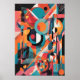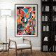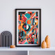 Esta obra de arte dinámica y abstracta rebosa de energía, con formas geométricas en capas en audaces tonos de naranja, verde azulado, coral y negro. Con un toque retro y futurista, este diseño crea un ritmo visual perfecto para espacios modernos, eclécticos o creativos.