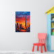 Bold expressionist skyline artwork inspired by Dubai and the iconic Burj Khalifa. Vibrant sunset colors and textured brush strokes transform the futuristic architecture into a dramatic urban cityscape painting. Perfect wall art for lovers of modern skylines, travel art and contemporary expressionist cityscapes.