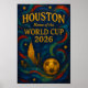 The most dramatic of the Houston series — deep indigo and teal swirls frame bold gold lettering as a soccer ball glows against the Houston night skyline. Rich impasto brushwork and expressive color make this a standout collector print for Houston soccer fans, World Cup 2026 visitors, and lovers of bold expressionist art.