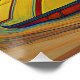 This painting depicts a vibrant yellow racing helmet covered with logos, set against a dramatically swirling blue night sky in a textured, expressive style reminiscent of Van Gogh.