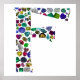 La CARTA 'F' está hecha con imágenes de piedras preciosas en todas las formas y colores, como: corazón zafiro, cojín cortado Esmeralda, diamantes marqueses y más...