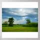 Una hermosa fotografía de nubes tormentosas que pasan por árboles y campos.