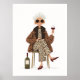 ¡Conozca al ícono final de la confianza sin agallas y el estilo sin remordimientos! Este fabuloso ilustracion cuenta con una moda anciana que irradia sass y elegancia. Con su cabello blanco llamativo, sus gafas de sol negras sobredimensionadas y audaces aros de aros dorados, exuda frescura eterna. Vestida de pies a cabeza con estampado de leopardo, desde su acogedor abrigo de imitación hasta su traje de salto a medida, se sienta elegantemente en una silla con una pierna cruzada, sosteniendo un vaso de vino tinto con aire. Una gran botella de vino se sienta a sus pies, completando esta escena de elegante placer. Sus tacones de burdeos y su expresión tranquila y segura lo dicen todo —esta es una mujer que sabe exactamente quién es. Perfecto para regalos, tarjetas de felicitación, o decoración de casa de modas, esta obra de arte celebra la feroz individualidad, diversión y el envejecimiento fabulosamente. ¡Salud para vivir la vida con la huella de leopardo y un vaso de rojo!