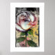 A single pink and white rose with red edges on a patterned background of soft hues of navy, gold, yellow, white and gray. Complements most any style. Do consider an upgrade to canvas for a more impressive presentation.