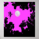 Dos siluetas de faerie negra y un bosque con fondo de fucsia
