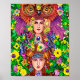 Fairy Princess Sisters flowers Owl colorido arte original nouveau fantasía cuento de hadas poster