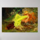 Poster con la pintura de Arthur Wardle A Fairy Tale (1895). Una joven de cabello largo y rojo usa un vestido amarillo y duerme en un bosque verde al lado del ciervo, un conejo y un pavo real. Un hermoso regalo para los amantes de los cuentos de hadas y los amantes del arte inglés.