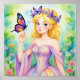 This whimsical poster features a pastel fantasy illustration of a blonde fairy-princess in a lavender gown, surrounded by flowers and butterflies-whimsical, colorful, dreamy art. Finished in a watercolor art print.