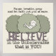 Little Boy es visto en una relajada pose en las copas de los árboles que ilustran la cita de arriba que nos recuerda que debemos hacer una pausa, respirar, rezar y dejar que la fe nos tranquilice. Las formas de los troncos de estos árboles deletrean la palabra, "CREYE" y la cita, "en el Increíble que es USTED!" debajo que completa el conocido dicho de David A. Carrizales. El dibujo es de Christie Black.