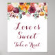 Utilice nuestro cartel floral de otoño "Love is Sweet - Take a Treat" con el signo de naranja, burdeos, crema y flores rosadas para que sus invitados sepan de tomar un dulce o un favor. La redacción es completamente personalizable. Utilice la herramienta "Personalizar esta plantilla" de Zazzle para introducir su propia información. Si necesita cambiar la ubicación de los cuadros de texto, el color de la fuente o el tamaño sólo tiene que hacer clic en el botón "Haga clic para más personalizares" para cambiar esas cosas. Asegúrese de comprobar nuestra amplia selección de elementos de coordinación navegando por la colección Boda Flor Caída!