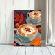 Fall Latte Date | Autumn Coffee Leaves Watercolor Painting Poster