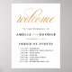 Este es un hermoso retrato poster orden de bienvenida de los eventos boda de cartel que presenta textos de guiones falsos de oro.
