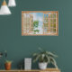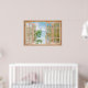 Ventana falsa con vistas al cielo de verano y a la vegetación, marco moderno de madera con 4 cristaleras
