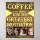 Esta poster enmarcada presenta un diseño rústico con la frase "Café y mi familia son mi mayor motivación". La impresión tiene cuatro fotos familiares, que pueden ser reemplazadas por las suyas. Este poster es una gran manera de mostrar tu amor por tu familia y el café, y sería una adición perfecta a cualquier hogar. El diseño rústico del poster es perfecto para cualquier casa de campo o casa de estilo rústico. Las cuatro fotos familiares son una buena manera de mostrar a tus seres queridos. Si buscas una manera única y personal de decorar tu hogar, esta impresión enmarcada de poster es una excelente opción. Seguro que te traerá una sonrisa a la cara cada vez que la veas. Las fotos tienen un filtro (el filtro San Telmo de zazzle) que filtrará automáticamente tus propias fotos. El esquema de color es un fondo gráfico falso de madera oscura con texto amarillo.