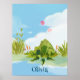 La mamá, la rana de papá y los bebés se sientan debajo de la hoja de loto. Los colores son pastel y parecen un cuadro acuarela. Esta impresión iluminará el dormitorio o la sala de juegos de cualquier niño. Se puede personalizar.