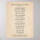 El fondo de un pergamino es una escena simple pero suave para mostrar fechas importantes en una familia de seis miembros. Las fechas de nacimiento, las fechas de bodas u otras ocasiones importantes pueden ser personalizadas en este poster que se supone debe ser un placer. Agregue un mensaje especial, que diga, comillas o Escritura en la parte inferior o elimine el texto del marcador de posición para dejar el área en blanco. Disponible con productos a juego y para familias de diferentes tamaños.
