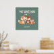 Adorna la guardería de tu bebé, el dormitorio de tu hijo o la sala de juegos con esta dulce familia de zorros. Este dulce diseño tiene un zorro mamá y papá zorro con un zorro bebé y "TE AMAMOS" escrito encima. Este póster será el toque final perfecto para la habitación de tu pequeño. Gran regalo para baby shower. Simplemente use la opción de personalizar para personalizar la impresión con el nombre de su hijo o cualquier texto que desee. También puede cambiar el color de fondo; Elegí un verde neutro en cuanto al género, pero sus opciones son ilimitadas. Vea más artículos de decoración divertidos en nuestra colección de guardería y habitación de niños.