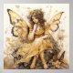 Hermosa imagen de un Hada vestida de amarillo sentado en un trozo de árbol en el jardín. Tiene flores adorables en el pelo y hay una mariposa monarca a sus pies. Esta imagen fue creada usando IA. #generativecontent