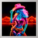 Una llamativa obra de arte digital al estilo neón de una vaquera segura de sí misma y atractiva que usa un gorra de vaquero rosa vívido, estilizada con un atuendo atrevido y con un brillante cinturón de herramientas. Se para frente a un telón de fondo electrificado de graneros y vallas, combinando temas occidentales con una vibrante ciberestética. (POR FAVOR! - Vea también otras nuevas colecciones para más opciones (¡¡Atención!!! - Al cambiar el tamaño del producto, la imagen de diseño se puede cambiar, se puede ajustar al nuevo tamaño haciendo clic en el botón - "Personalizar \ Editar usando la herramienta de diseño", siempre dejo la oportunidad de cambiar el tamaño y la posición del diseño en el producto a su gusto.))