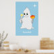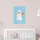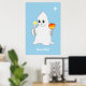 Espectacular de Halloween aguantando una vela y calabaza en un Poster azul claro. El texto original puede ser personalizado.