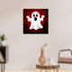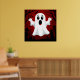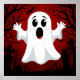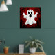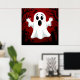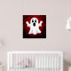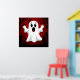 Representación divertida de un bonito fantasma personalizado rodeado de tumbas, murciélagos y árboles espeluznantes bajo un paisaje de Halloween. Perfecto para materiales temáticos de Halloween y diseños lúdicos.