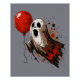 Mi fantasma espeluznante, lindo, con un globo rojo brillante.