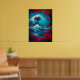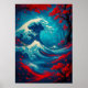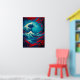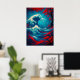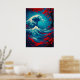Una vibrante obra de arte de fantasía inspirada en la clásica Gran Ola, reimaginada con aguas azul audaces, árboles de flores de cerezo en rojo intenso y una vista distante del Monte Fuji. Esta poderosa mezcla de tradición japonesa y estilo de fantasía hace una pieza llamativa para los amantes del arte japonés, los temas oceánicos y los paisajes dramáticos.