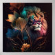 Póster Fantasy, beautiful lion with flowers AI art