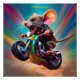 Póster Fantasy Cute Mouse montando en bicicleta