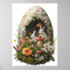 Gran Poster de Pascua con un gran huevo de Pascua y lindos animales como un conejo de Pascua o un conejo. Magical Fantasy Forest Floral Art con flores y animales adorables. Semana Santa.