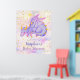 Adorable purple and pink baby dragon sleeping peacefully amongst pastel rainbow clouds and gold glitter confetti stars on this cute customizable baby shower welcome poster. Great for a dragon themed baby shower or fantasy themed baby shower for a baby girl. This whimsical design will add some sparkle to your dragon baby shower celebration!